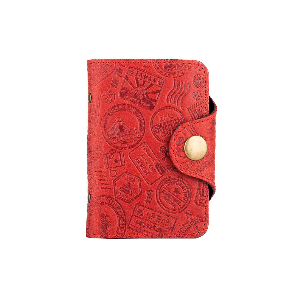 Зручний шкіряний картхолдер червоного кольору з художнім тисненням "let's Go Travel"