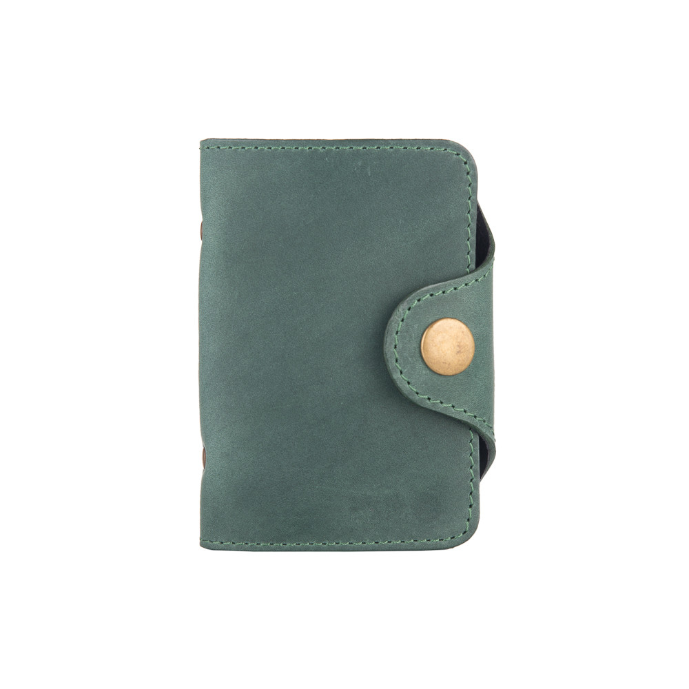Зручна візитниця з натуральної матової шкіри зеленого кольору